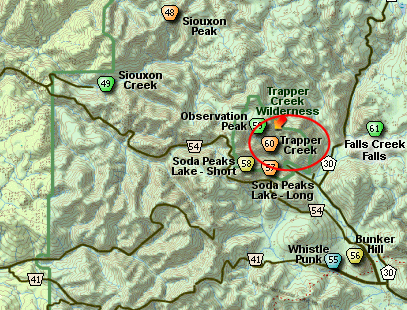 FR5401 and cross Trapper Creek and drive a short distance to the parking area and
